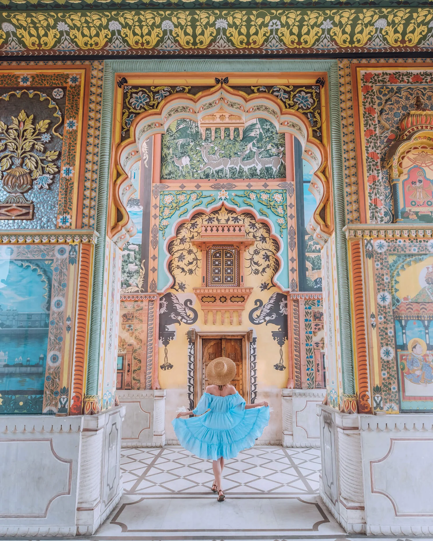 The palace is renowned for its majestic architecture, beautiful courtyards, grand halls, and intricately painted walls and ceilings. It is also home to some of the oldest and rare frescoes and wall paintings in Rajasthan.